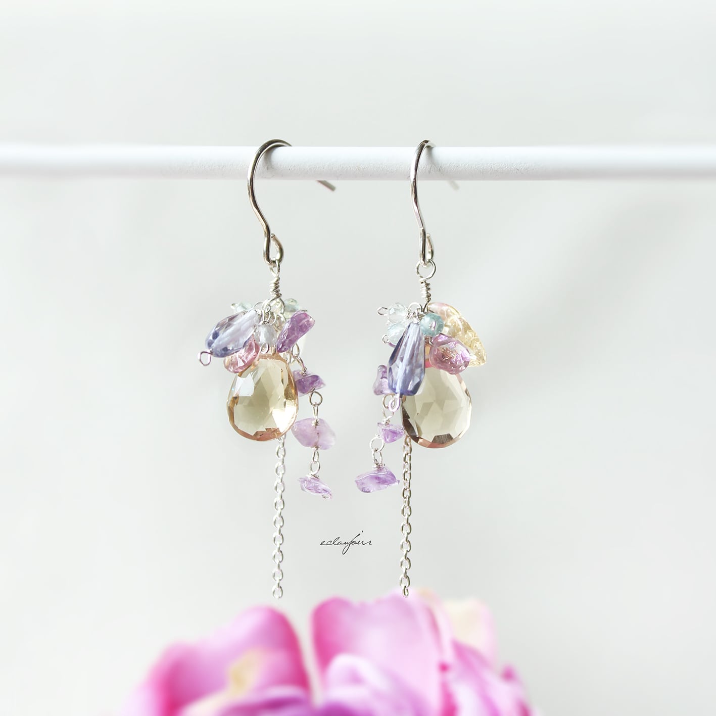 天然石:シャンパンクオーツ、アイオライト、シトリン、フローライト、アメジスト、マルチスピネル