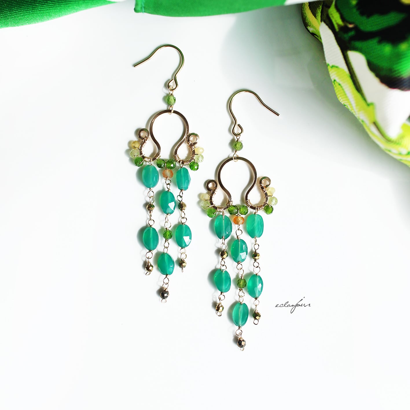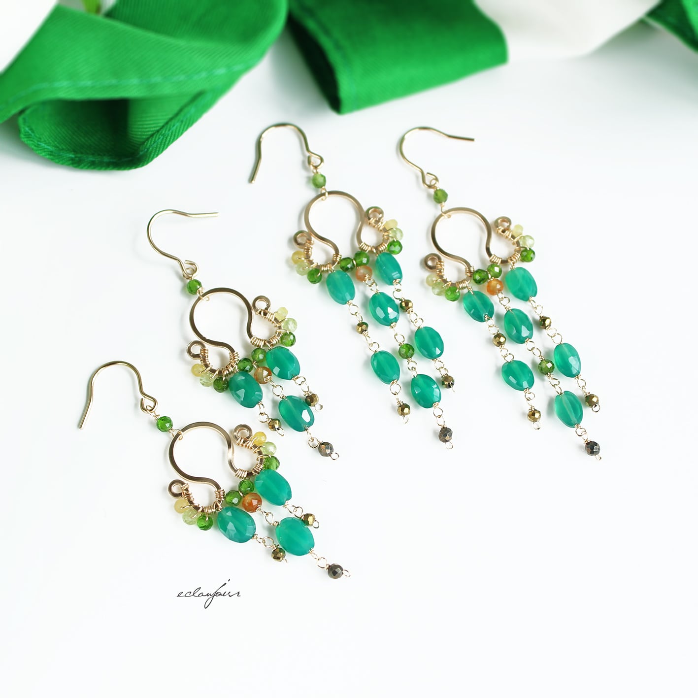 ◯グリーンオニキスが6つ下がった華やかなロングタイプになります。