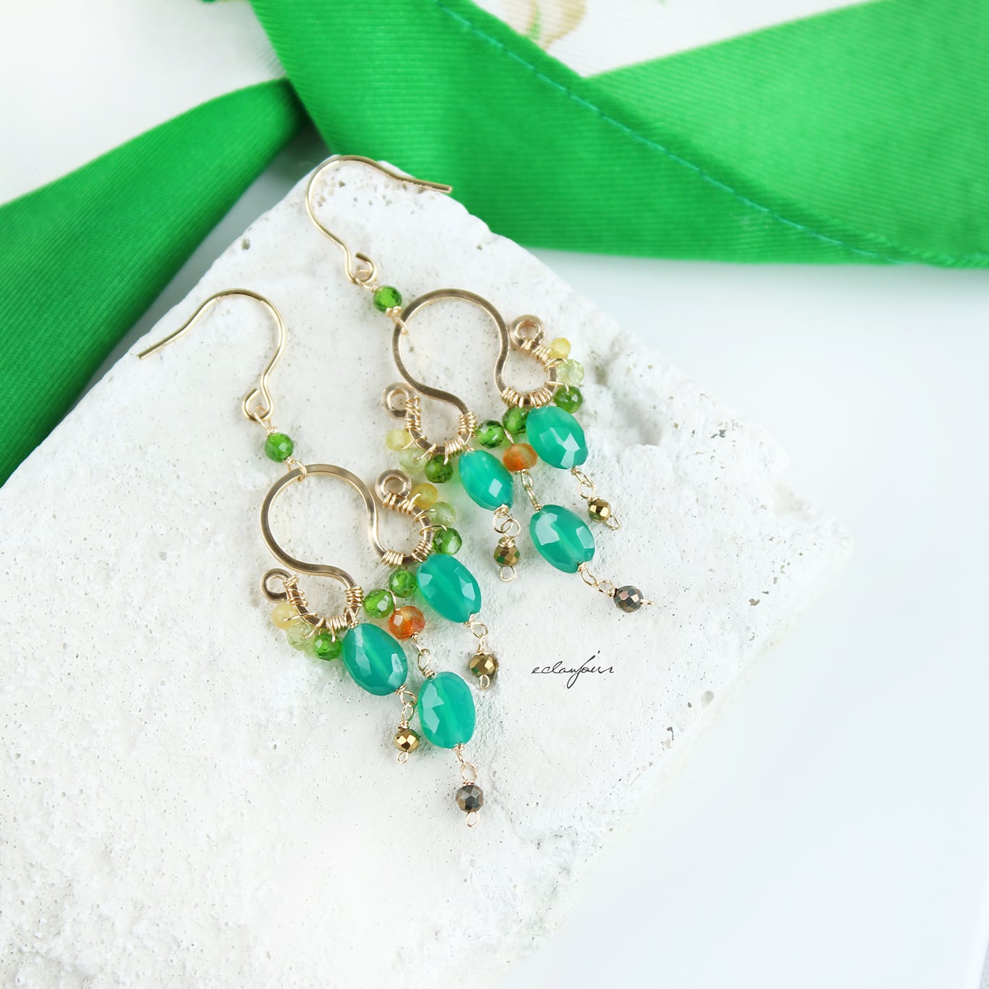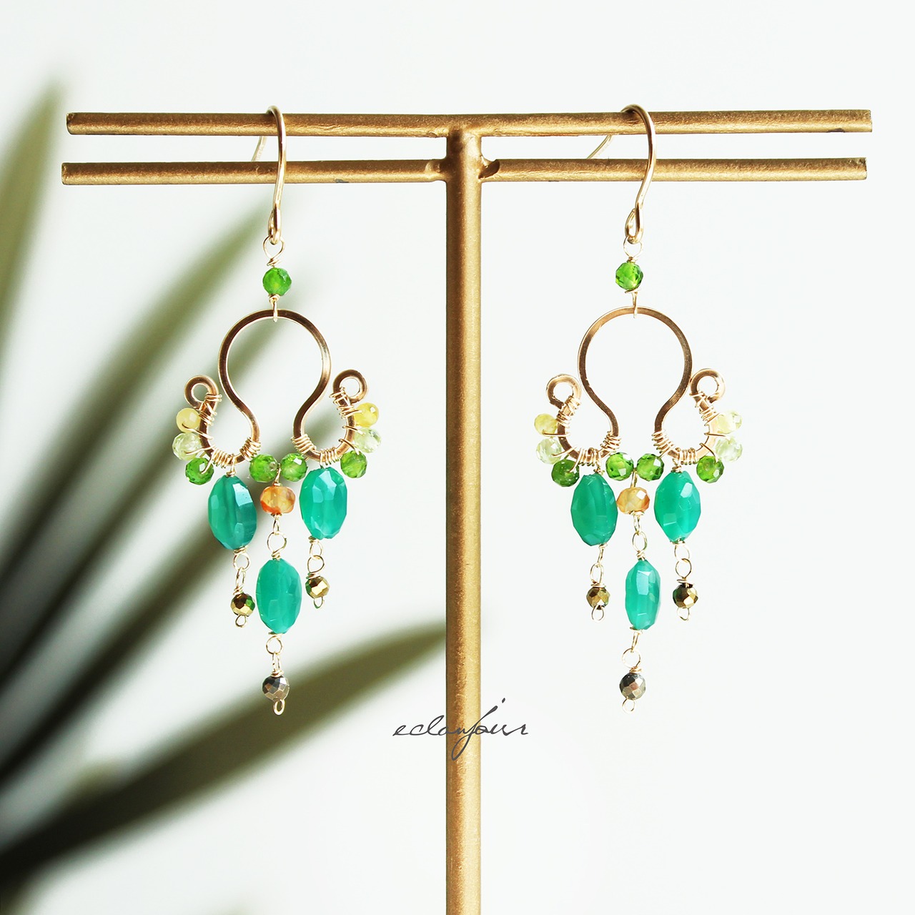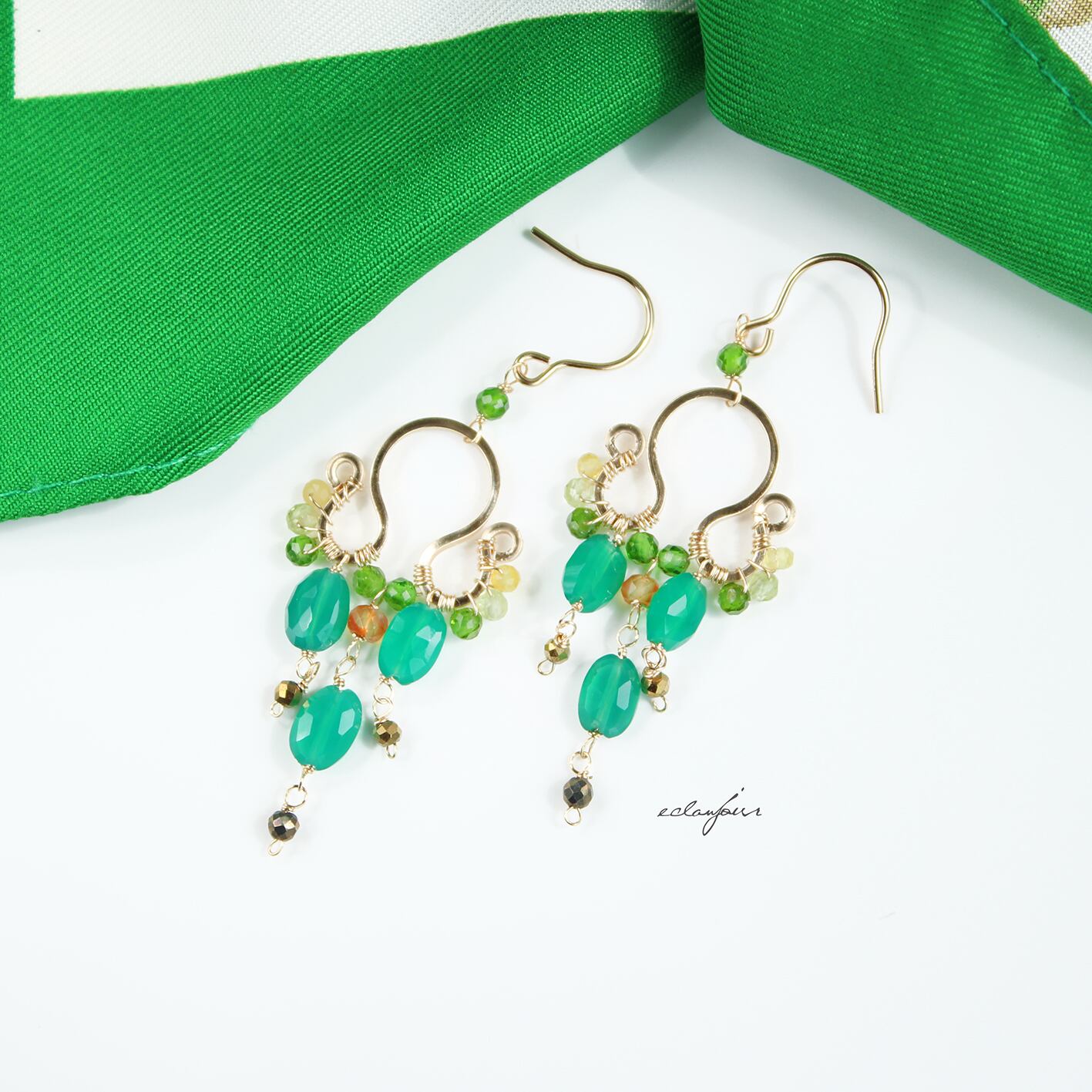 ◯グリーンオニキスの瑞々しいグリーンカラーを引き立たせるために色数は最小限に抑え、上品さと華やかさを添えました。