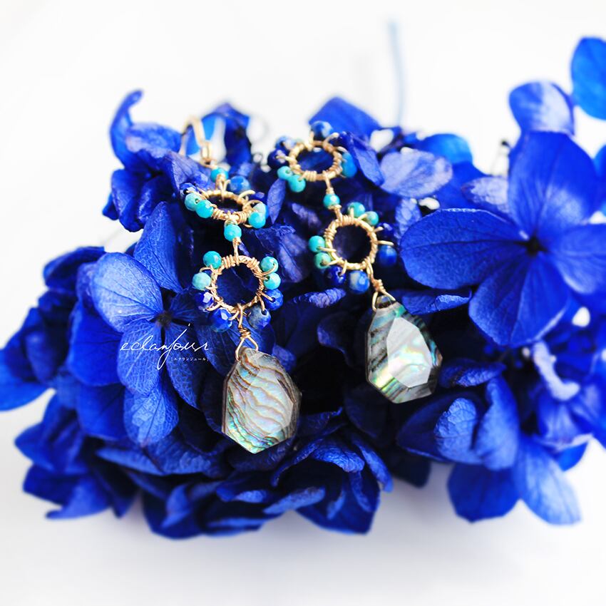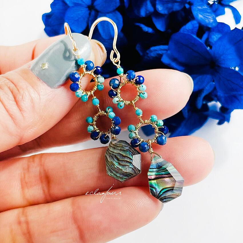 「海のオパール」ともいわれる美しいアバロンシェルを使用したエキゾチックなピアスになります。