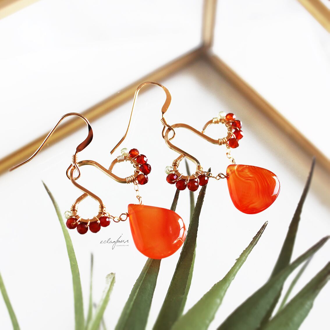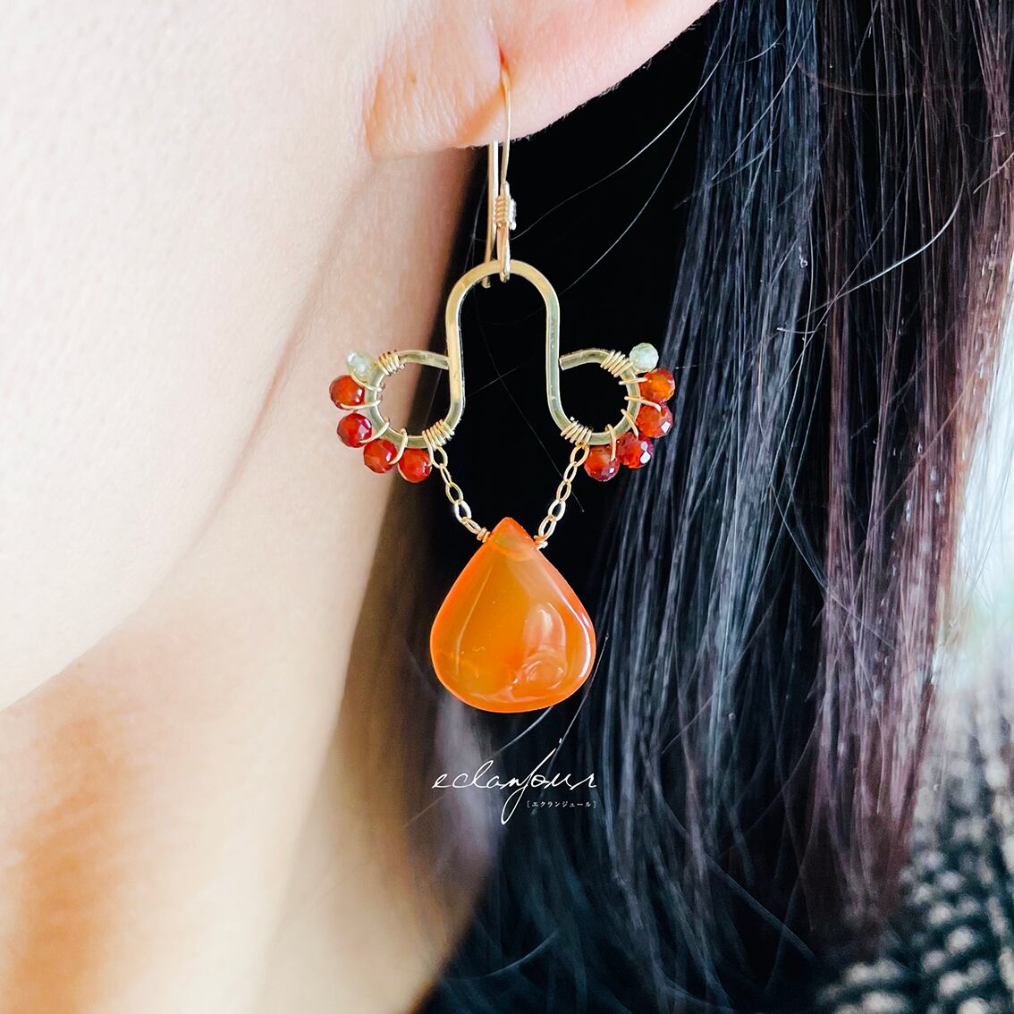 14kgf/カーネリアンのスカーレットピアス&イヤリング【eclanjour】
