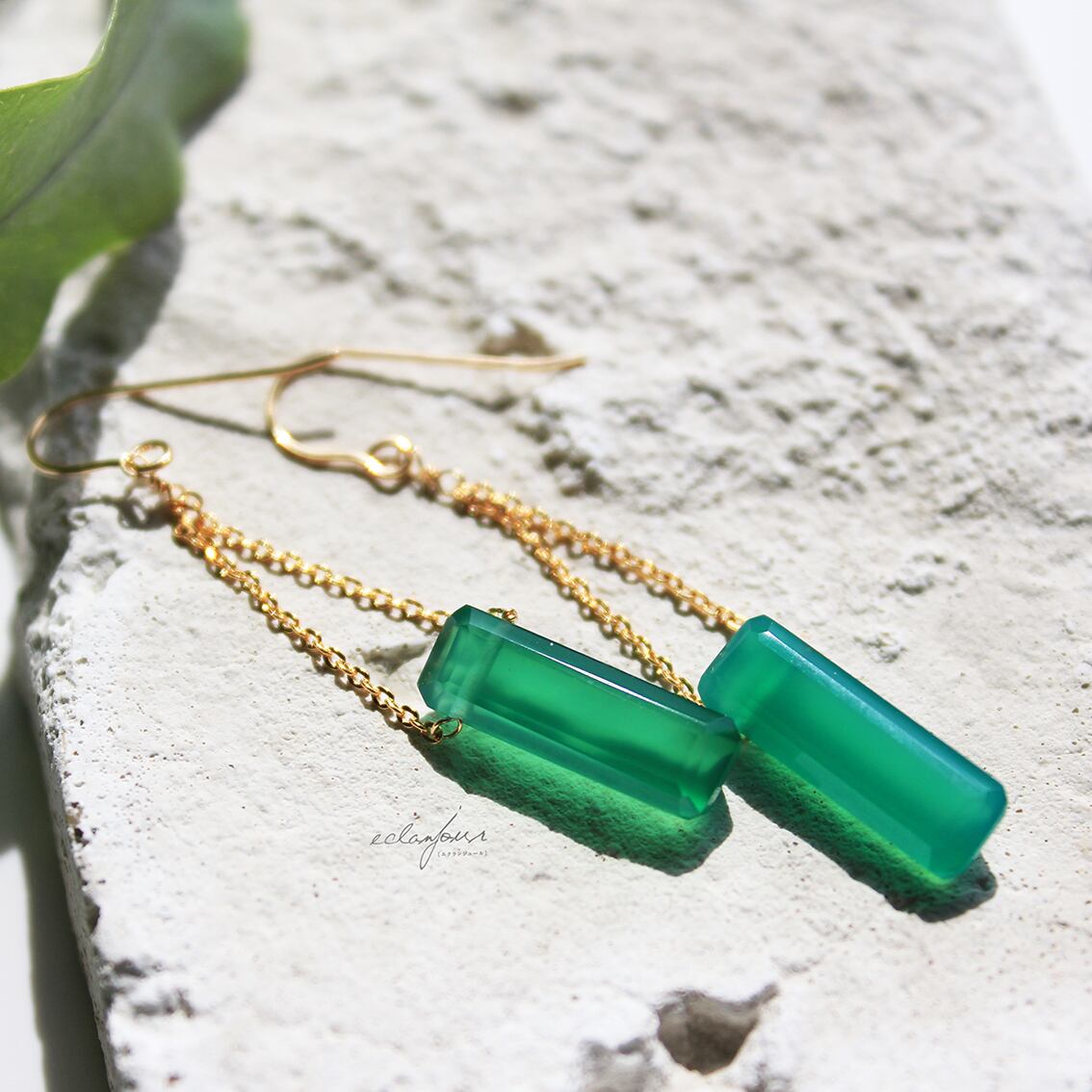 ハレムグリーンシリーズの中でももっともシンプルでスタイリッシュなデザインの【ハレムグリーン#4】。レクタングルファセットカットのオニキスがキラリと光るピアス&イヤリングです。