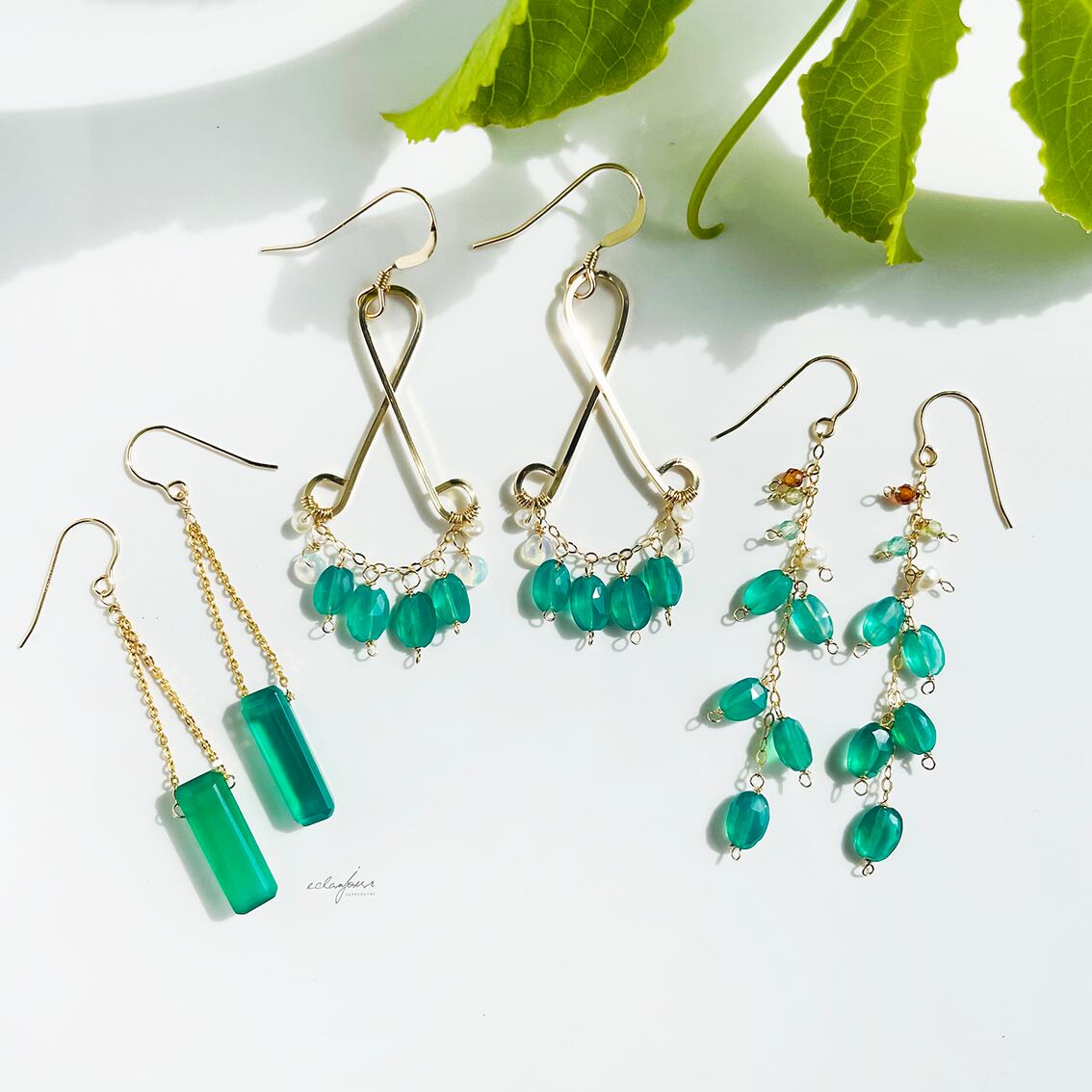 14kgf/ハレムグリーンのピアス&イヤリング#4【eclanjour】