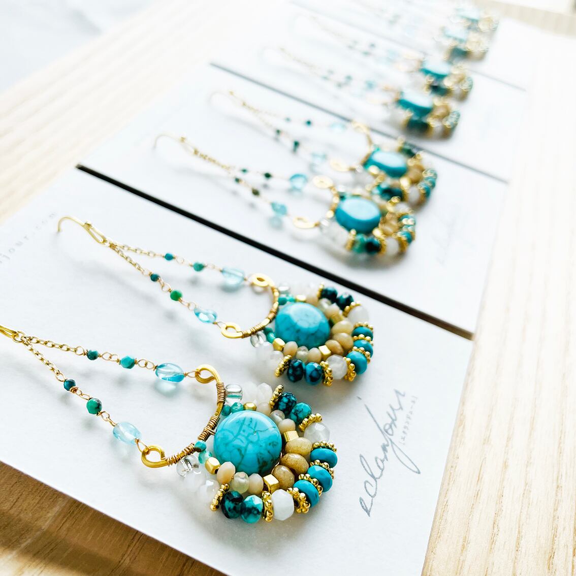使用天然石:マグネサイトターコイズ、天然ターコイズ、ブルーアパタイト、グリーンカルセドニー、他天然石etc.....