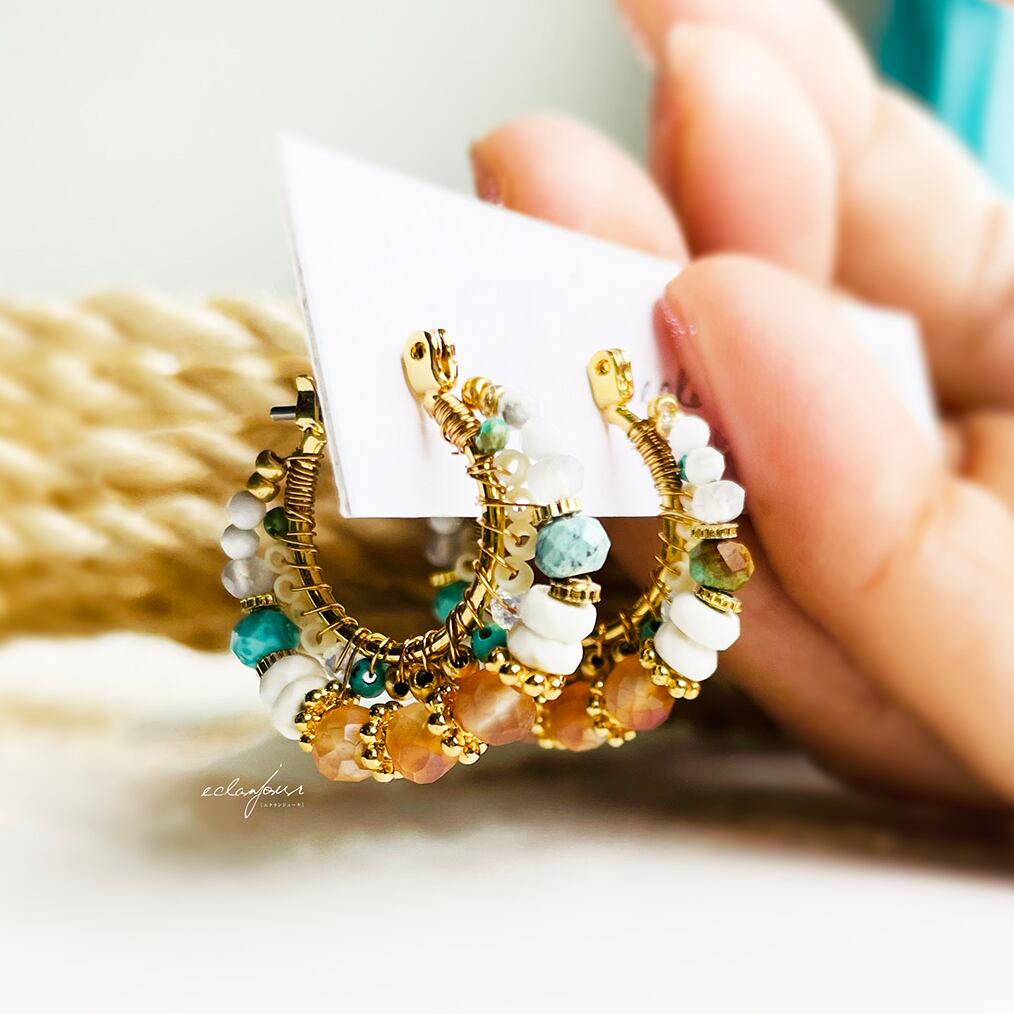 繊細な作りのピアスだからこその上品な印象の大人ボヘミアンピアスです。