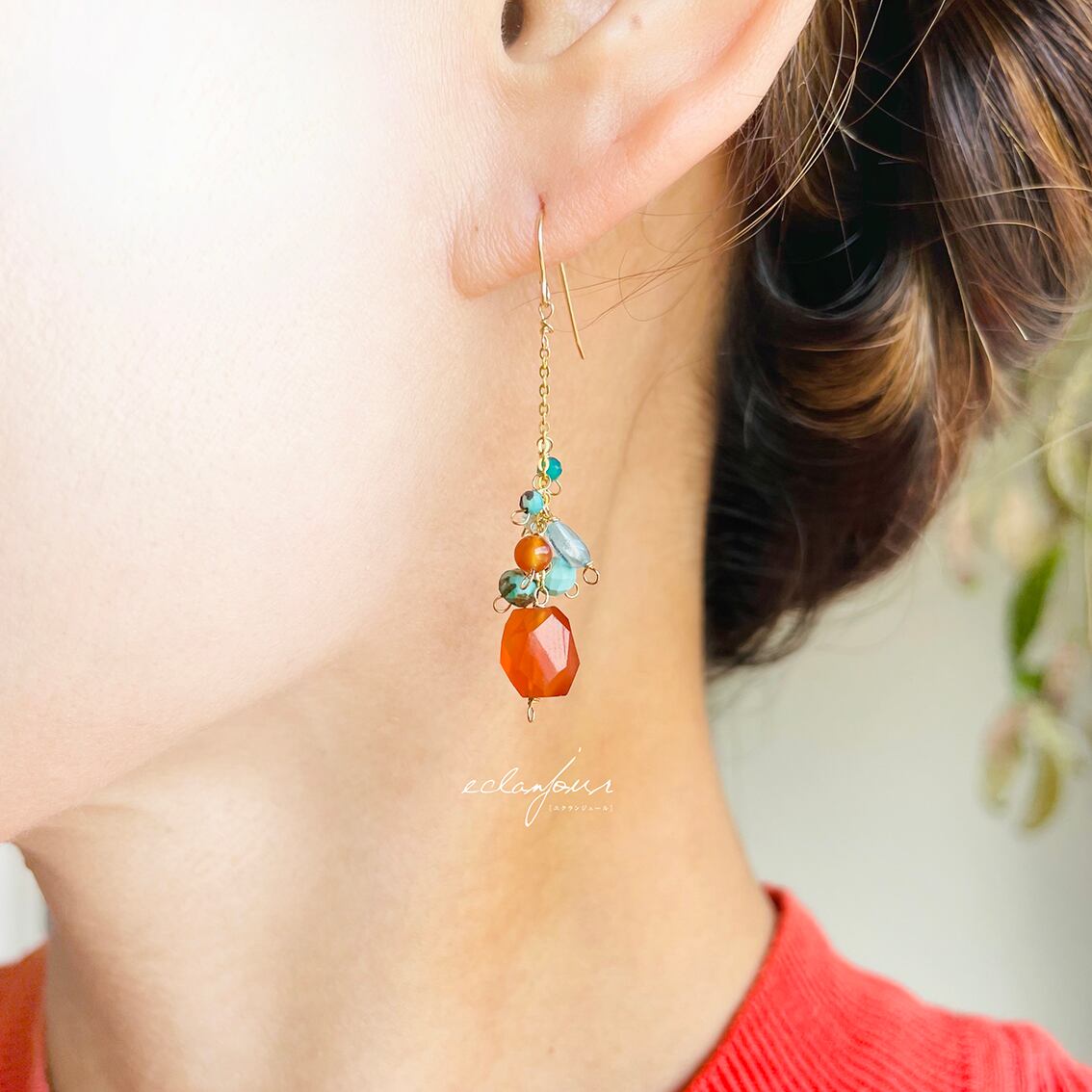 ラテンアメリカに対して私が持つ情熱的なカラーをイメージして制作したピアスです。