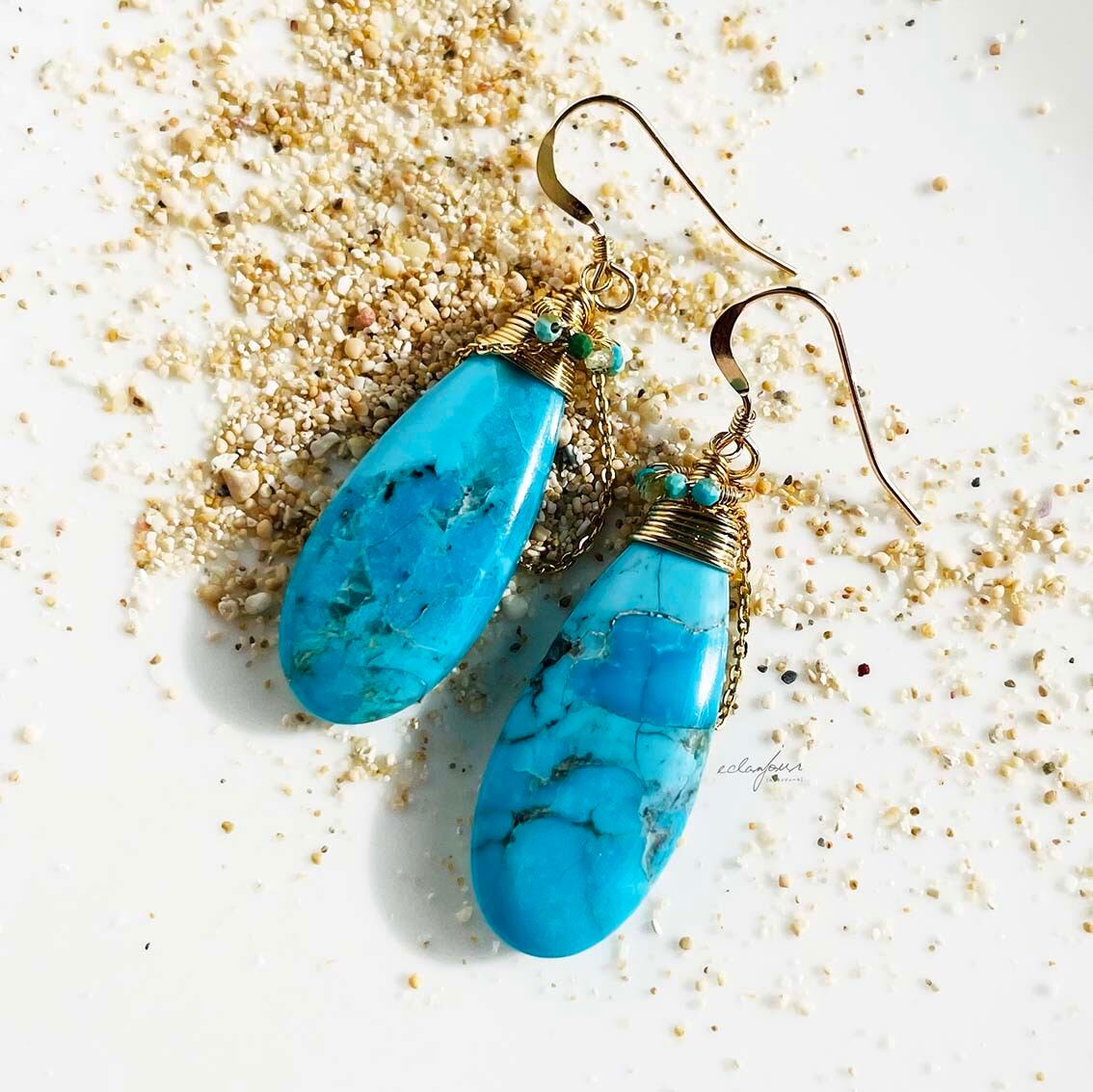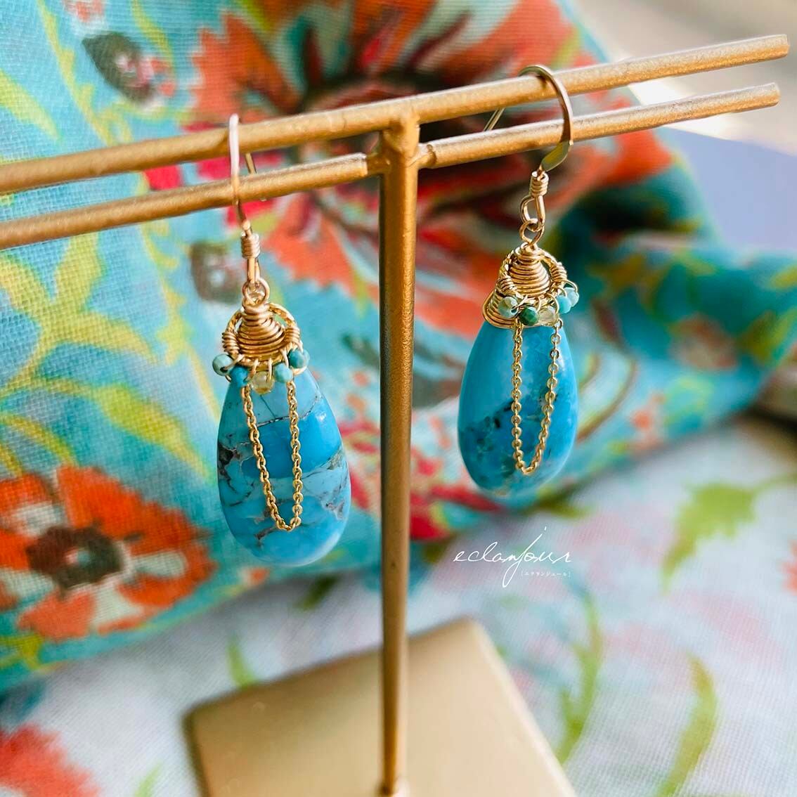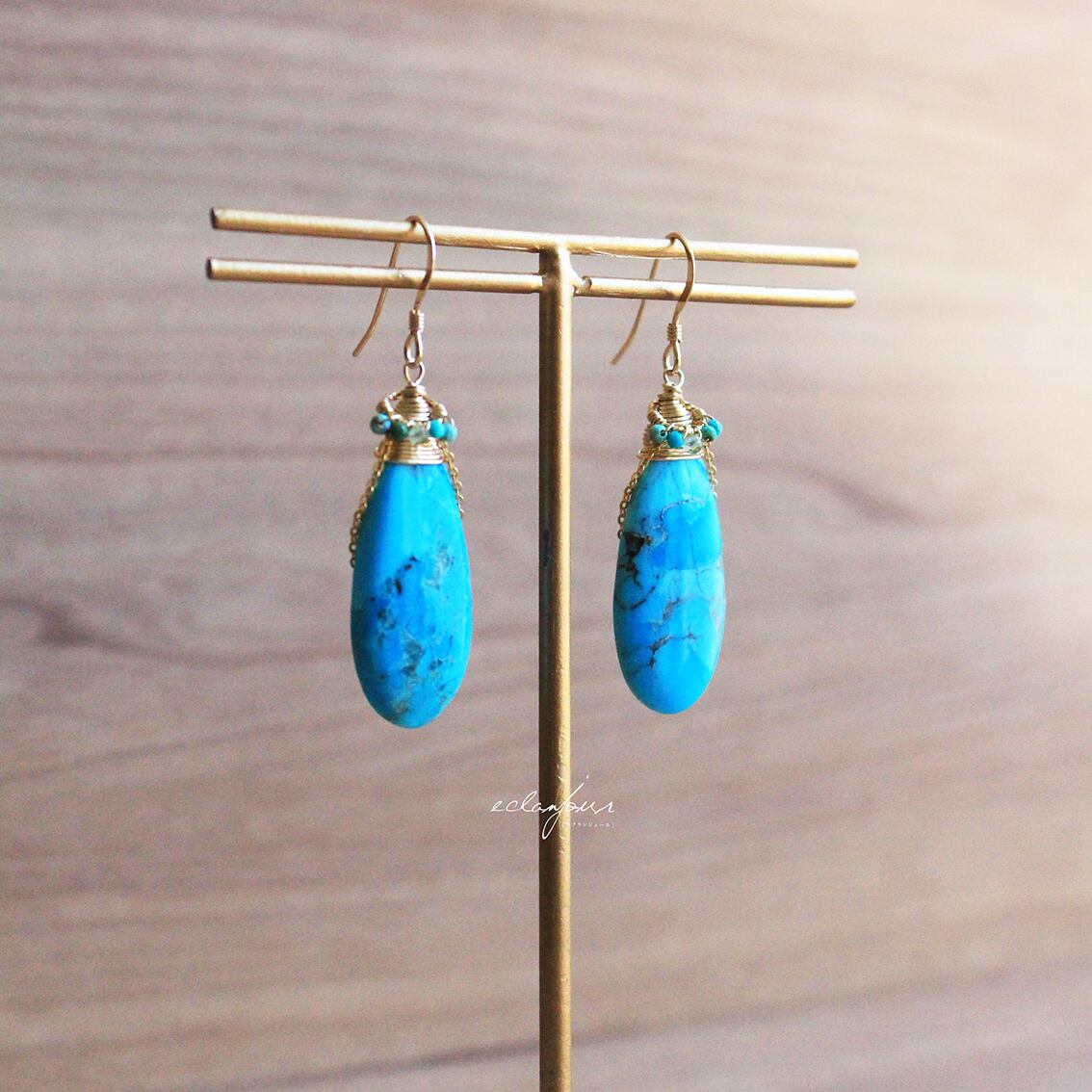 14kgf/2way・大粒ターコイズのピアス 〜皇女のティアラ〜【eclanjour】