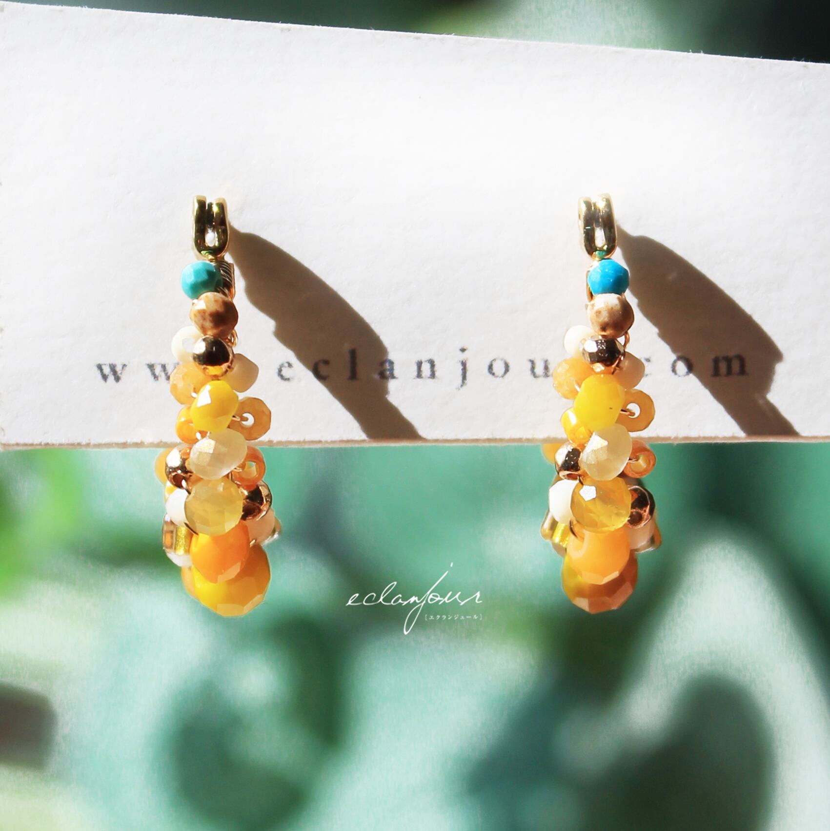 華やかな明るい配色、様々なトーンのイエローをかき集めた心がウキウキしてくるようなイエローカラーのピアス、春や夏に向けお出かけも多くなりますが、是非ファッションに取り入れて楽しんでくださいね(*^^*)