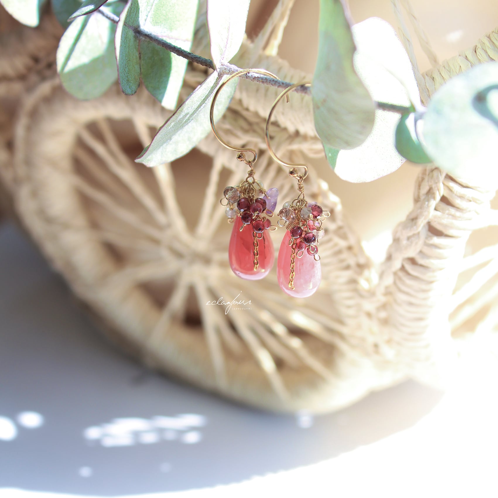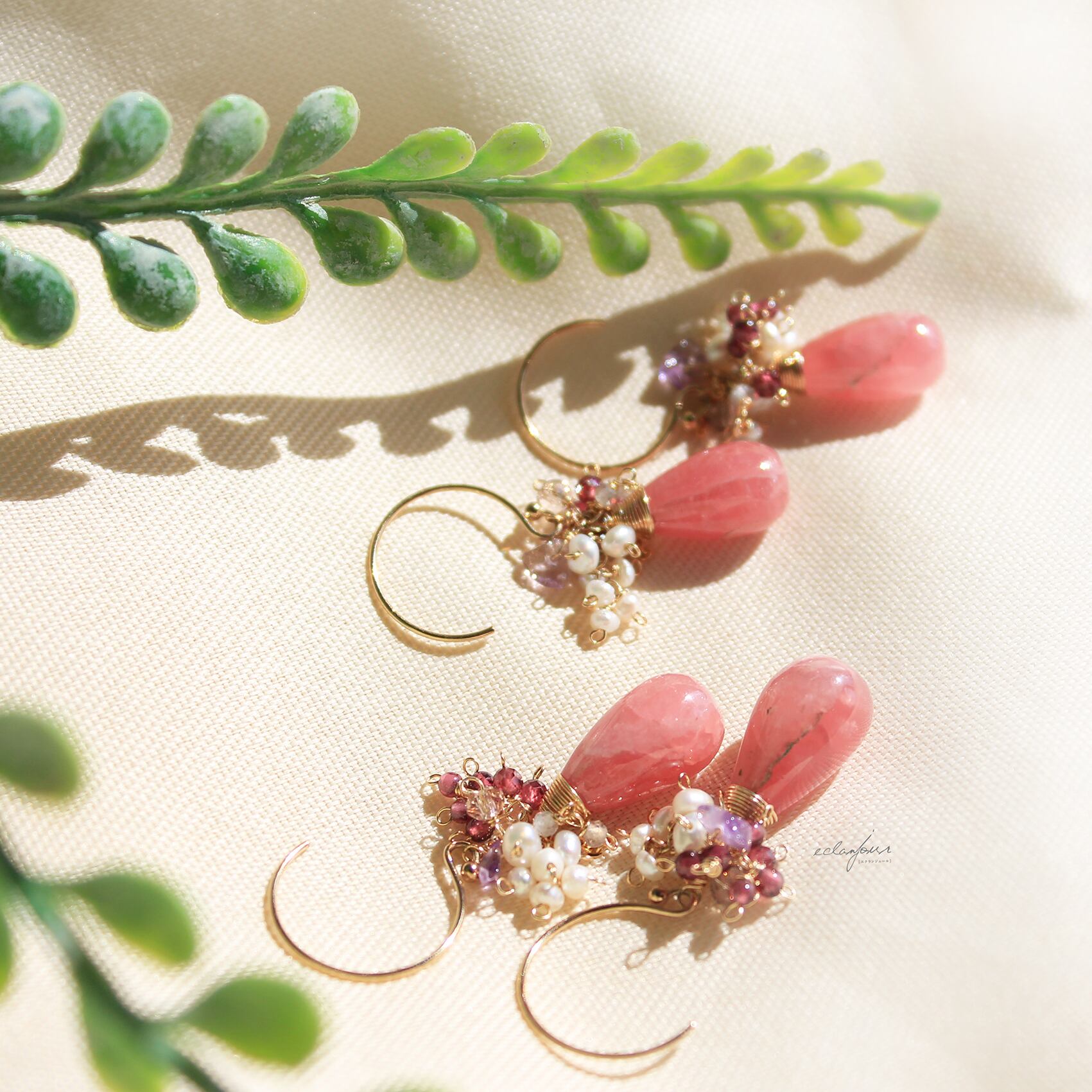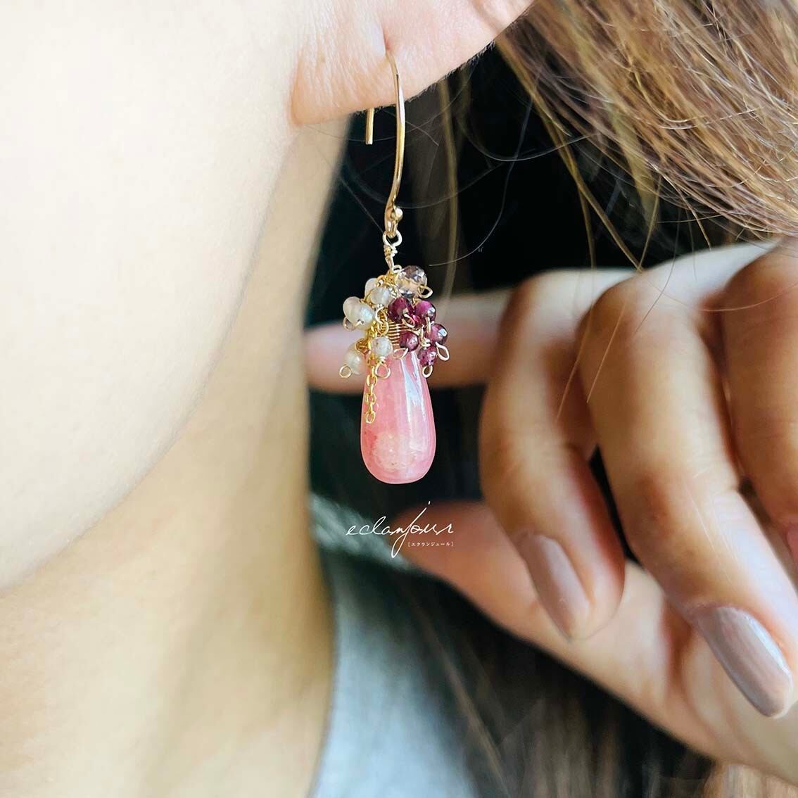 14kgf/しっとり華やかピンク〜インカローズのピアス&イヤリング【eclanjour】