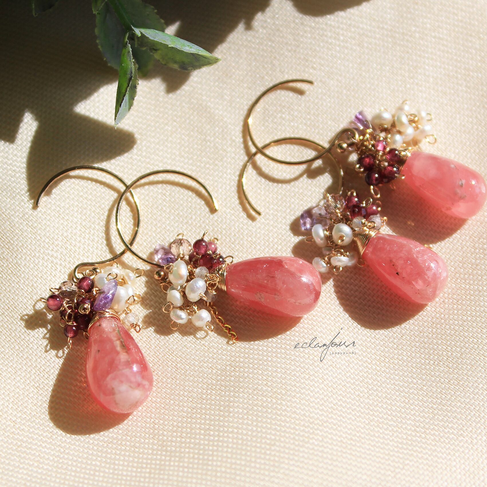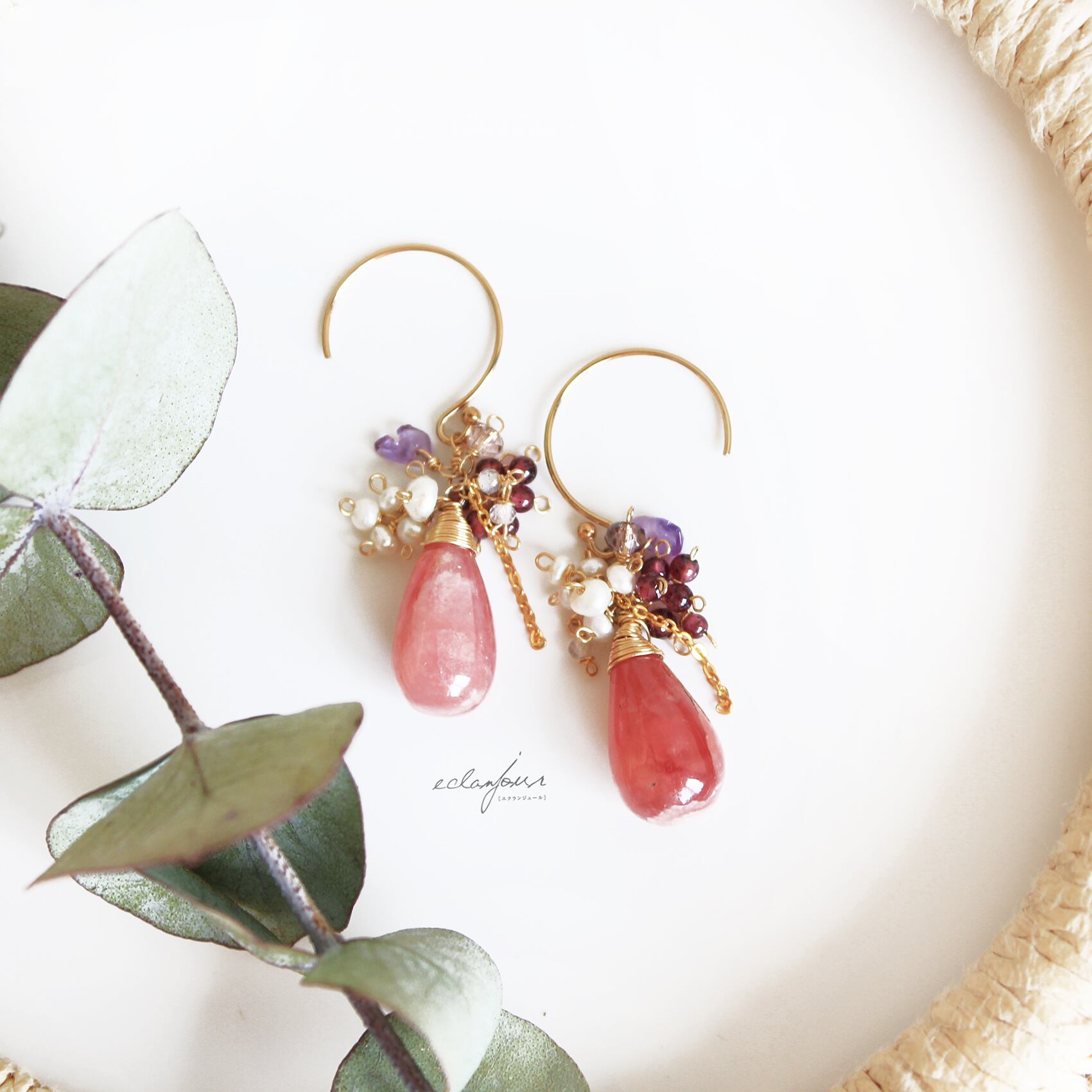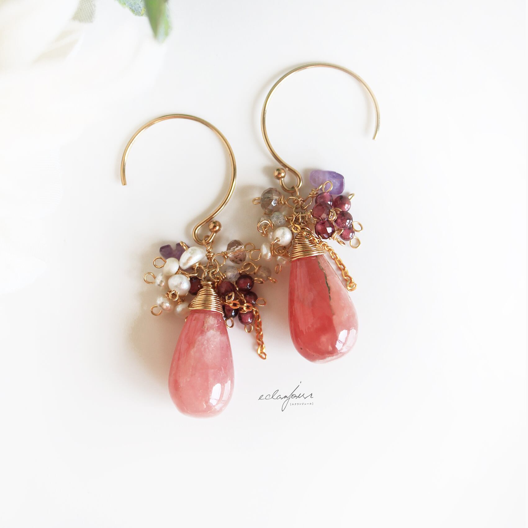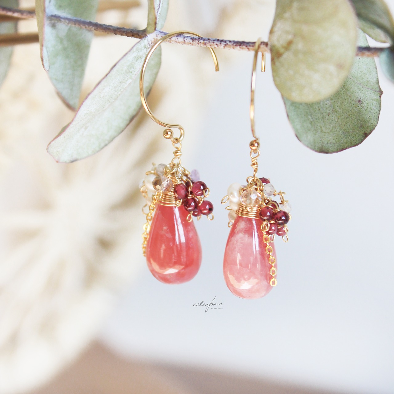 14kgf/しっとり華やかピンク〜インカローズのピアス&イヤリング【eclanjour】