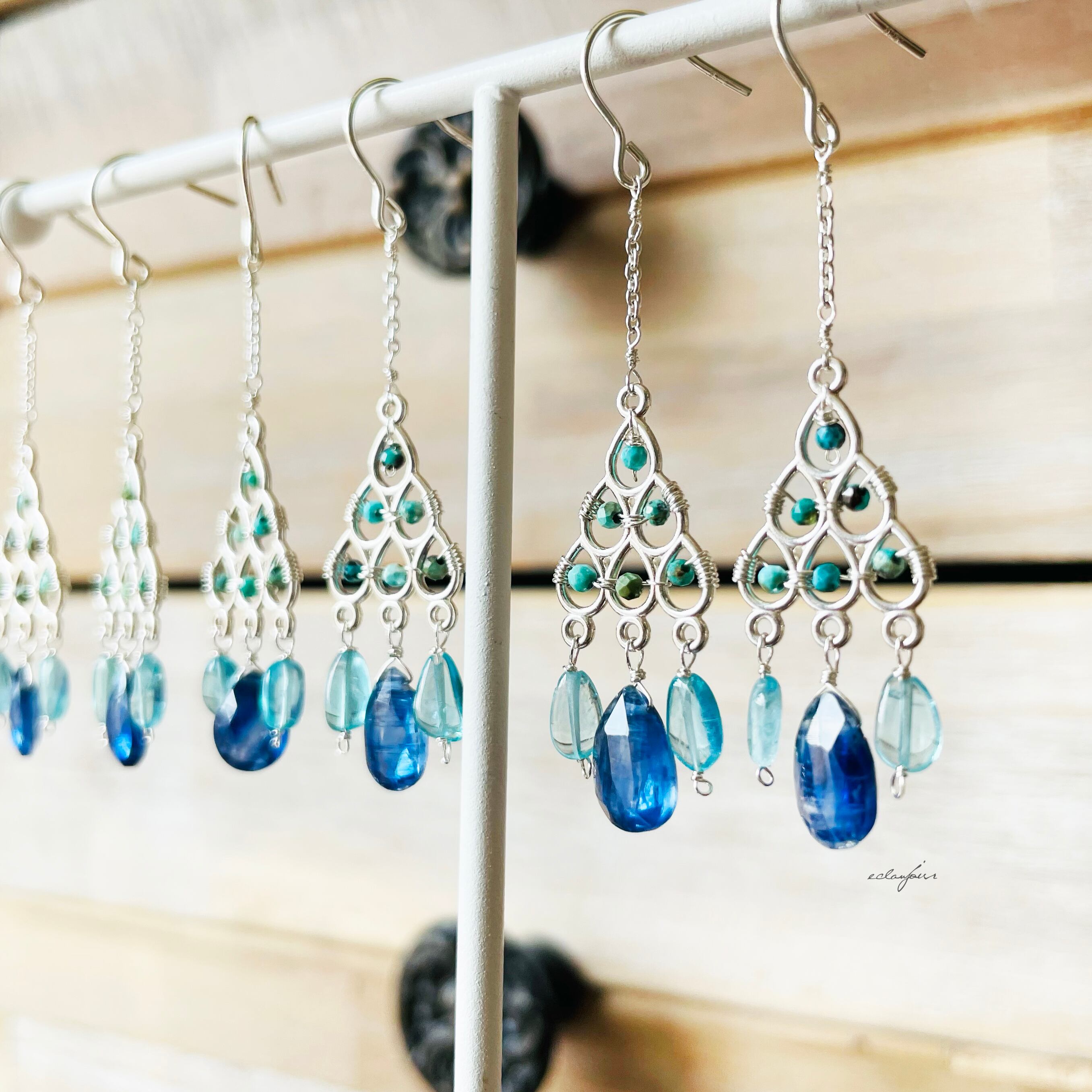 天然石:カイヤナイト、ブルーアパタイト、天然ターコイズ