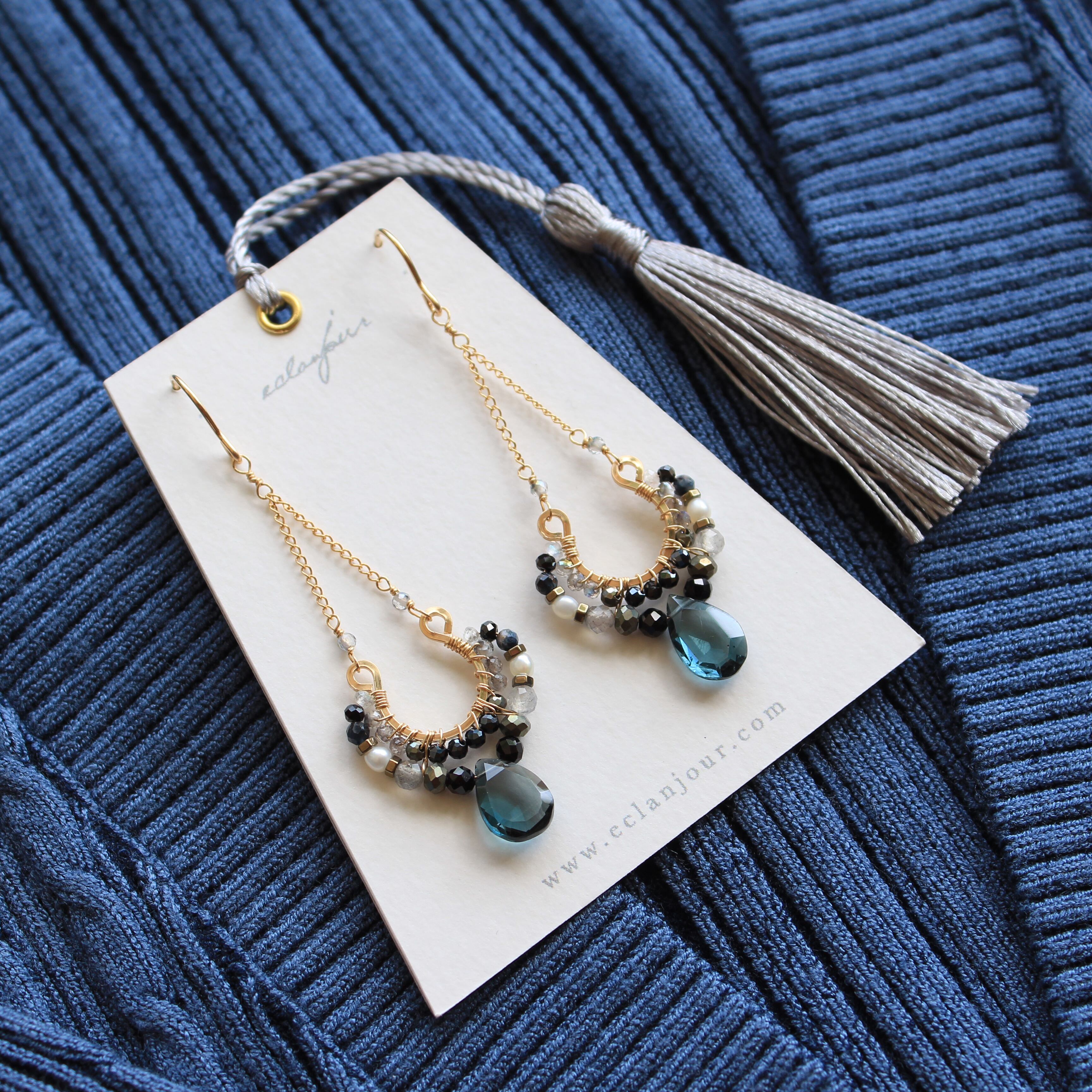 14kgf/ロンドンブルートパーズのクレセントピアス&イヤリング【eclanjour】