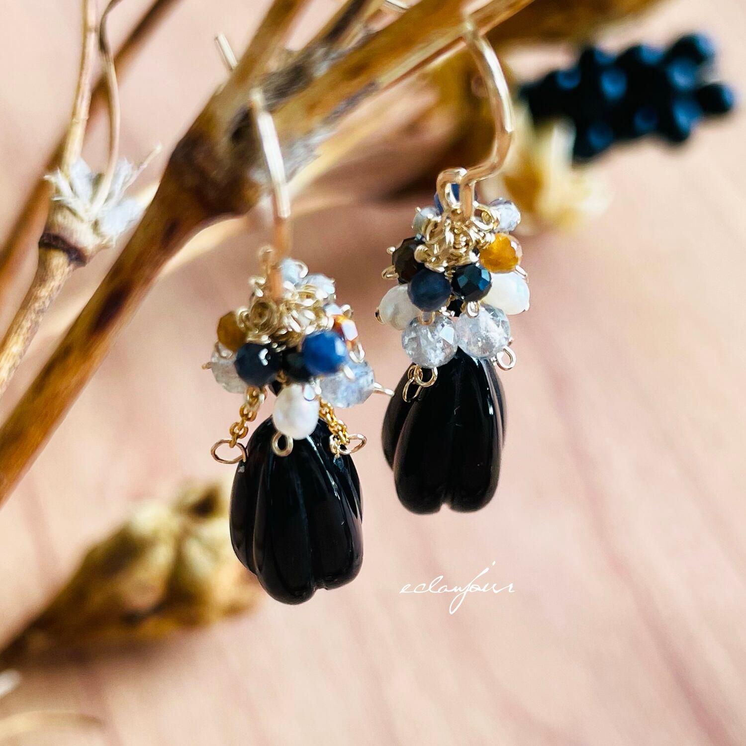 14kgf/艶めくオニキスのピアス&イヤリング【eclanjour】