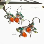 ◎カラフルな天然石を並べた孔雀の尾羽根をイメージしたピアス&イヤリングです。