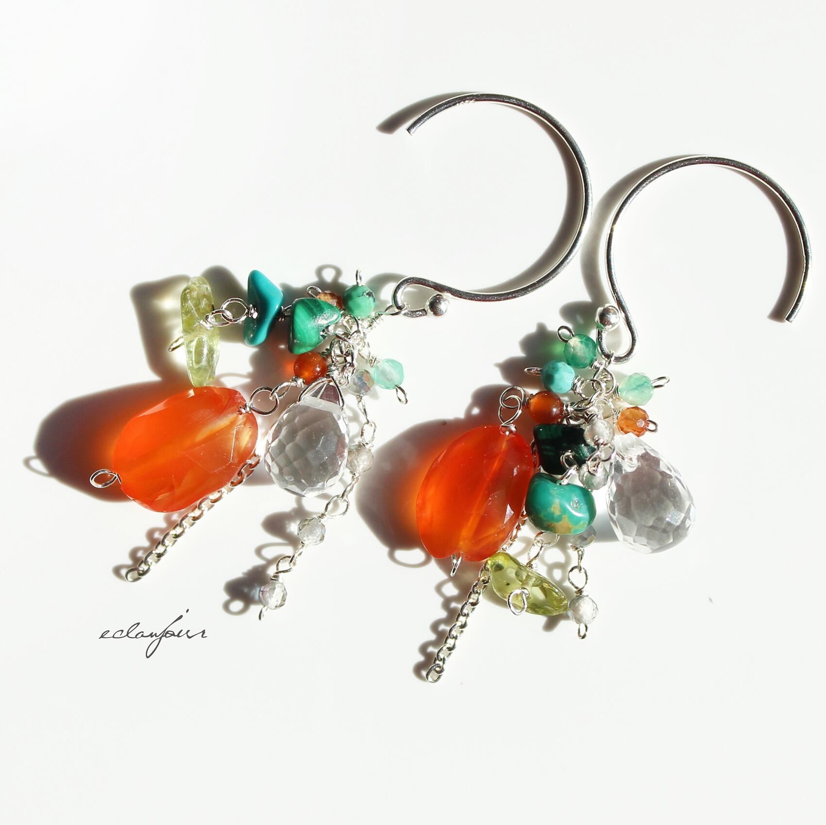 天然石:カーネリアン、水晶、トルコ石、ペリドット、マラカイト、ヘソナイト、トパーズ、グリーンオニキス